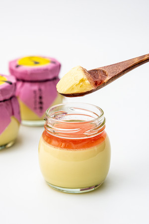味のキメテとなる下川六〇酵素卵(しもかわろくまるこうそらん)の濃厚さに後味がさっぱりしているぷりんは、1日1500個の販売実績を持つ「えっぐぷりん」の新フレーバー『さくらのじゅれぷりん』は見た目も可愛い2層ぷりんになりました。