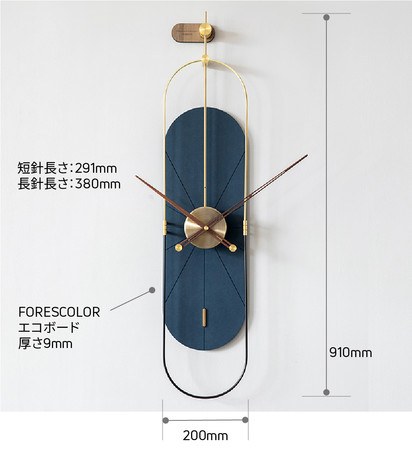 時計の土台となる部分にはエコフレンドリーな「FORESCOLOR エコボード」。環境に優しいMDF材で作られ耐湿性が高く丈夫で、美しい色と質感を持つ集成材です。外観と表面から全体に至るまでの一貫したブルーグレー色が大人でモダンなインテリアのアクセントとなります。