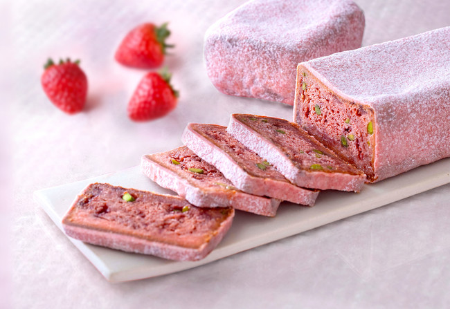 季節毎に味わいを変えてお楽しみいただける、クリスマスに大人気のシュトーレンの技法を用い創り上げるこのお菓子はフリーズドライの苺と、苺味のチョコレート、ピスタチオを散りばめました。ジョ エル・ロブションならではの特別なこのお菓子は、香り立つバターに苺の甘酸っぱさを合わせた贅沢な味わいをご堪能いただけます。 苺の味わいや甘さ、バターの量の調整に何度も試行の末に発売に至ったこちらのお菓子は多くの方にお召上がりいただきたい逸品です。