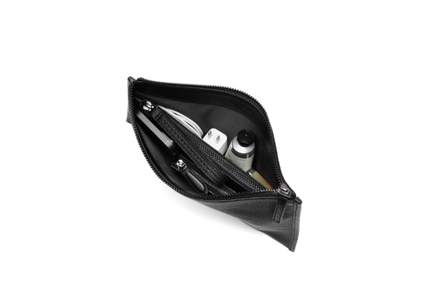 「トラベル ハンディクラッチ」は、マチのないスリムな設計のクラッチバッグ。機内や、空港・ホテルのロビーなどで使う手回り品をまとめるのにちょうど良いサイズ感。同シリーズの「ポーチ」や500mlペットボトルも収まります。