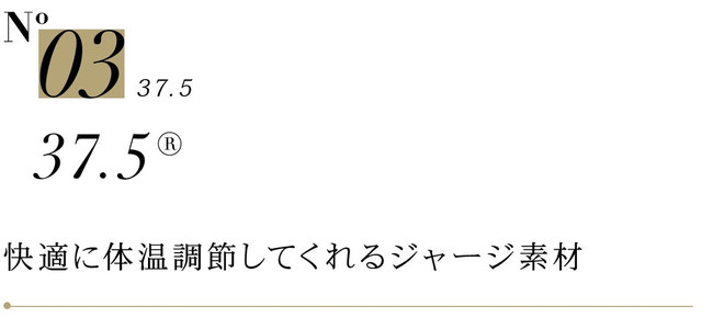「37.5テクノロジー」という体温調節素材を使ったジャケットとパンツ。暑い時には衣服内の湿気を取り除き、寒い時には暖かさをキープしてサーモスタットの様な役割をします。また、体のラインを拾いにくく、マルチに伸びるノンストレスな着心地を追求したジャージ素材です。