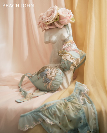 2019年に誕生した「巨匠のブラ」シリーズは、ピーチ・ジョンの人気デザインブラシリーズとして、今までに葛飾北斎、ウィリアム・モリス、グスタフ・クリムトをはじめとした巨匠の名画を、繊細な刺繍やレースでブラ・ショーツの細部までに表現し、まるで名画からそのまま出てきたようなデザインで大きな話題となりました。今回の最新作は、ルネサンスの最盛期の巨匠サンドロ・ボッティチェッリの代表作≪ヴィーナスの誕生≫からインスパイアされたデザインを展開します。愛の女神ヴィーナスをはじめとする、ギリシャ神話の神々を緻密な刺しゅうで再現。祝福の風に舞うバラを刺しゅうした豪華なチュールレースで、ヴィーナスの美しさを感じさせる優美でソフィスティケートな1枚に仕上げました。