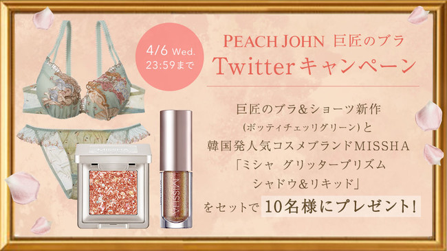 また発売を記念して韓国発人気コスメブランド「MISSHA」のコスメと巨匠のブラ&ショーツのスペシャルセットプレゼントキャンペーンをPEACH JOHN公式Twitterにて実施いたします。