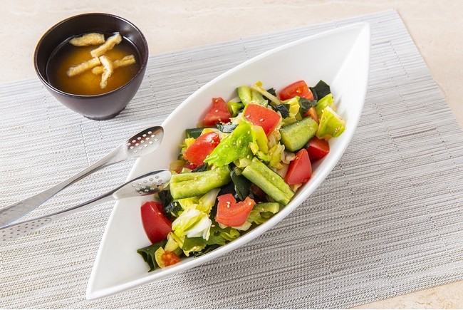 「春野菜と大豆ミートの味噌炒め ゆず胡椒風味」、「春キャベツのチョレギサラダ」、