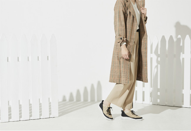 「パンプスのようなスニーカー」をコンセプトに開発したバレエシューズタイプのスニーカーは、フェミニンな服装が好きな女性の散歩シーンにもぴったりです。