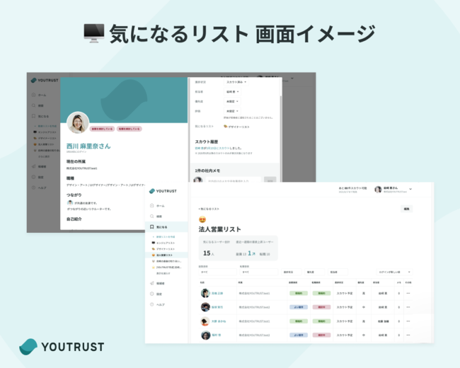 「気になるリスト」並びに法人向け「YOUTRUST」のご利用を検討される企業の方