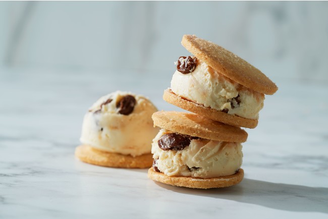 埼玉県の狭山茶チーズクリームに北海道産大納言かのこ豆を入れ、チーズクッキーでサンドしました。