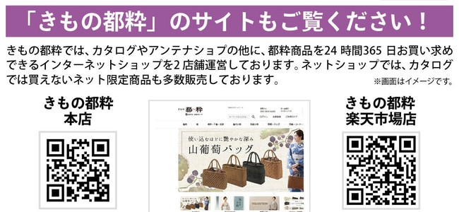 「きもの都粋カタログ」は、年2回(春夏号と秋冬号)発行している都粋取り扱い商品を紹介するカタログ誌。