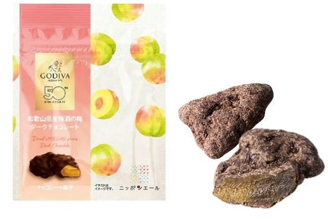 日本酒に漬け込んだ「和歌山県産南高梅」を蜜漬けし乾燥させた果実を、ベルギー産のカカオ分58%のダークチョコレートでコーティング。
