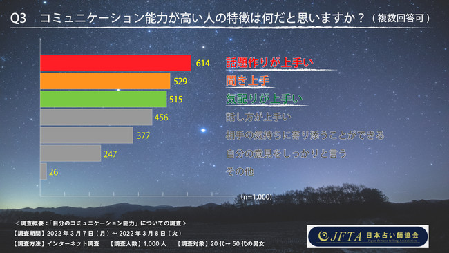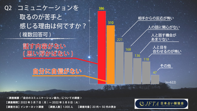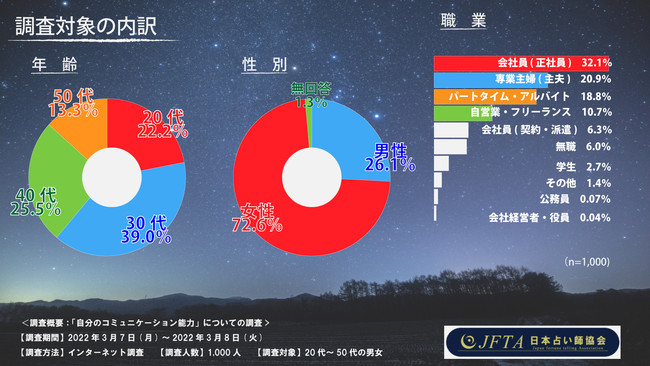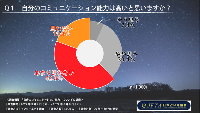 日本占い師協会は、20~50代の男女を対象に「自分のコミュニケーション能力」についてのアンケートを実施しました。