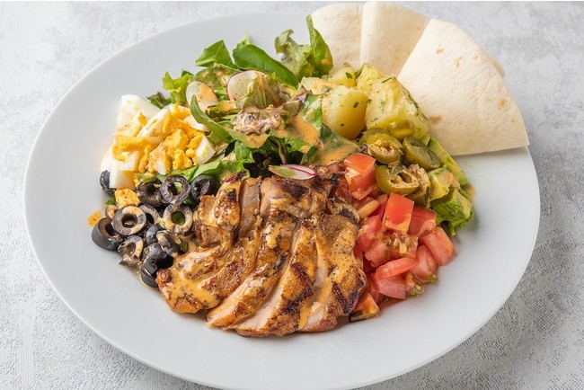 たっぷりの野菜と色どり豊かな具材を一緒に食べられるボリューム満点お食事サラダ。お好みでハラペーニョで辛味を調節したり、焼き立てのトルティーヤで巻いたり楽しみ方自由自在。