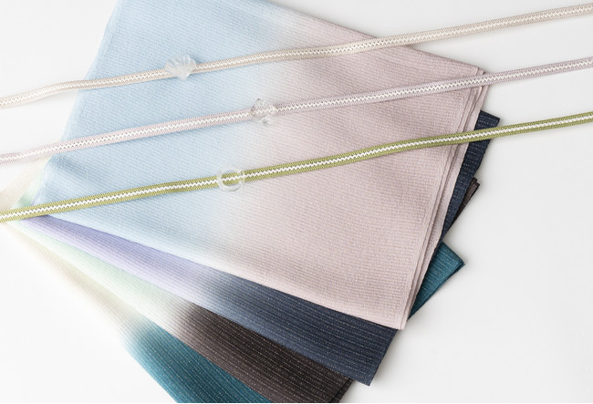 また、「ピンストライプ」は雨が伝う様子をイメージしてデザイン。ベーシックかつ着やすいシボのある生地は風が通り抜ける清涼感があり、さわやかな透け感は目にも涼しいシリーズです。