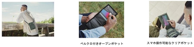 コンセプトである、使いやすさ、利便性はそのままに収納力と機能性をアップしました。新機能として、フロント部分に物を取り出しやすい縦ポケット、パスケースなどがつけられる伸縮性のあるコードが付属しました。