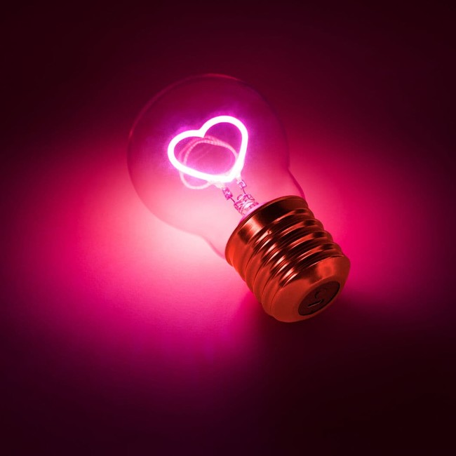 「Heartwarming (心温まる)」という言葉をビジュアルで表現したかのような、バルブランプ。透明の電球の中にハート型の2色のフィラメントが入っています。