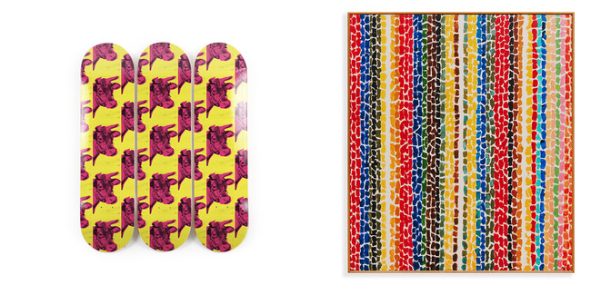 画像/左:ウォーホル:Cow スケートボード 3点セット