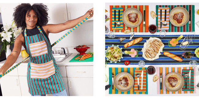 ブルックリン在住のデザイナー「エレン・ヴァン・デューセン」による、鮮やかな色彩が特徴のコットン100%のストライプ柄のエプロン。