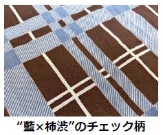 大昔から受け継がれた伝統色「藍と柿渋」、天然染料ならではのチェック柄を、ぜひお楽しみください。