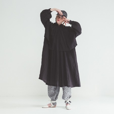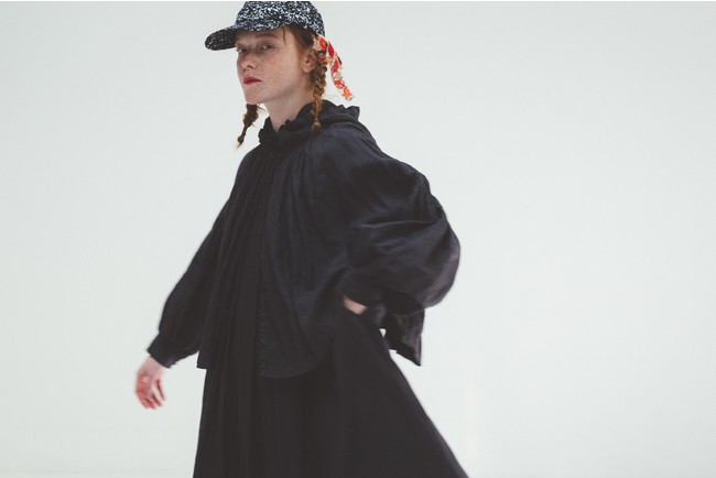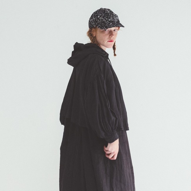 素材は吸湿発散性に優れたラミーを使用。レインパーカー風のフード付きブラウスと、前後着用可能な2wayワンピースの2型をご用意致しました。