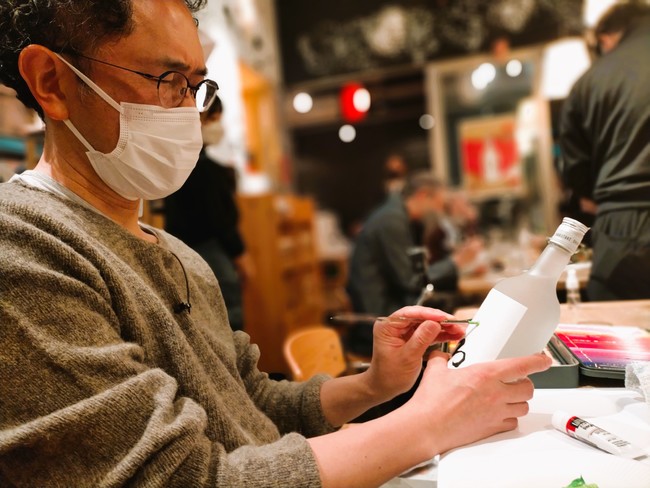 「せっかく酔彩画を描くなら酒瓶にそのまま描いた方が面白い」という小山薫堂さんのアイデアと白岳しろを「アート×お酒」という新しい文化として社会に広めていきたいという高橋酒造の想いが重なり、酔彩画のキャンパスに白岳しろを採用することが決定。同時に、TIS所属のイラストレーターたちが白岳しろを飲みながら「酔彩画」を描くイベントを実施することも決まりました。