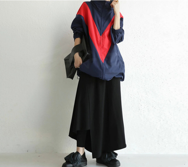 着物のシンプルな四角い型をベースに、袖いっぱいに大きめのジッパーポケットをつけました。隠れたデザインジッパーで、ちょっとした遊び心を演出します。