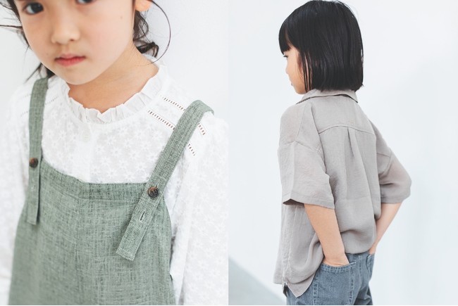 せっかく可愛い洋服を見つけたのに、すぐサイズアウトすると思うと躊躇してしまう。そんなお母さんやお父さんたちも気軽に、子どもたちの成長に添って、長くさまざまな着こなしが可能です。