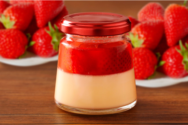 果汁シロップに漬け込んだ苺を“まるごと2粒”使用したこだわりの苺プリン