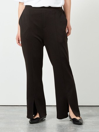 裾のスリットがポイントで、脚を長く綺麗に見せてくれます。またウエストゴム仕様で楽に着用頂け工夫もされています。