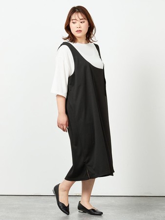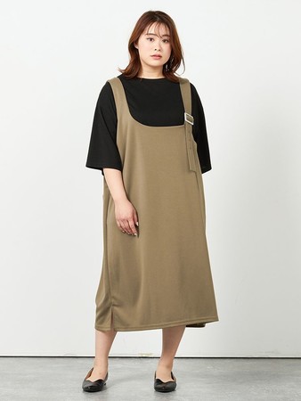 忙しい朝にも本商品1枚でコーディネートが完成する、ジャンバースカートとTシャツのセットです。