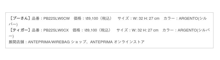プーさんとティガーは、アンテプリマのアイコンとも言うべきスタンダード/スクエア ラージと同じシェイプを採用し、程よいサイズとシンプルなフォルムにすることで、デイリーに使い易いエフォートレスなトートバッグに。ジュエリーのように輝くシルバーをベースにし、キャラクターの存在感を引き立たせつつもコーディネートに取り入れやすいデザインに仕上げています。プーさんは耳が立体的に、ティガーはチャームポイントのしっぽがひょっこりと伸びていて、さりげない遊び心を加えています。