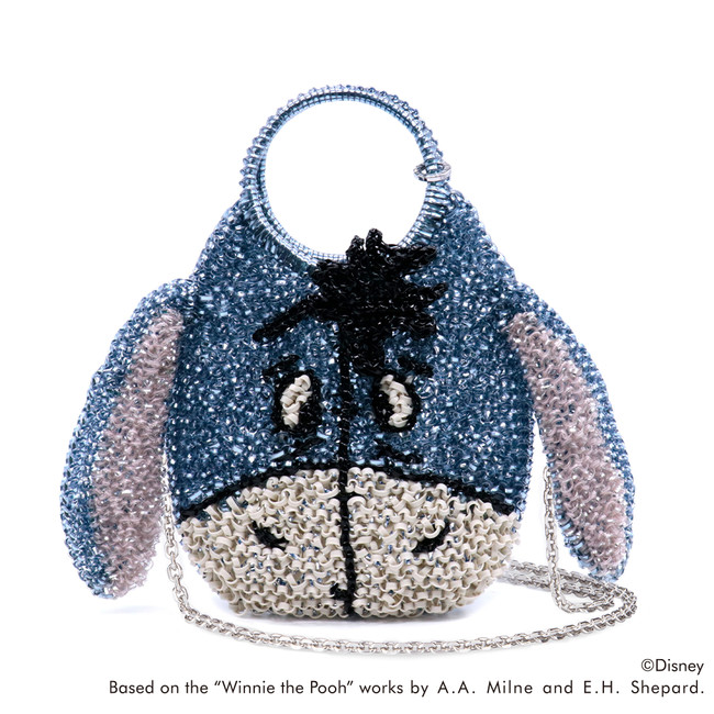 ドロップ型の丸いシルエットがキュートなミニバッグに大胆に表現されたイーヨーは、そのあどけない表情をアンテプリマのクラフトマンシップにより立体的なニッティングで表現。遊び心のある、個性的でオリジナリティー溢れるデザインに仕上げました。