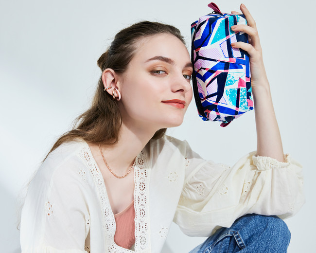 ウガンダの女性達の手で作られた大胆でパワフルなプリントのRICCI EVERYDAYのポーチと、プラス ヴァンドームのアクセサリー3点をスペシャルなセットで発売。アクセサリーは、カラーコーティングしたダブルラインのイヤーカフ兼リングと、粒感を際立たせたメタルにカットガラスが1石輝くイヤーカフ、イヤーカフのデザインとリンクした首元に華やかさプラスするボールチェーンのネックレスがセットです。このセット1つでコーディネートが簡単に完成し、ギフトにもおすすめ。雇用創出を通じて遠いアフリカの地に住む女性の自立をサポートし、全ての人に元気と明るさをもたらすコレクションです。