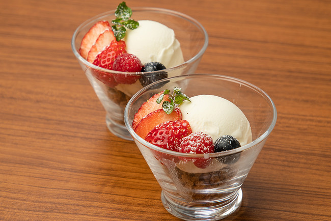 ショーケースから選べる手作りスイーツをご用意する「chanoma-秋葉原」の密かなお薦めがデザートセット。日替わりの「本日の小さなデザート」、「ピスタチオ」「低温殺菌ミルク」「ロイヤルミルクティ」の3種が揃う「小さなアイスクリーム」の中からお好みをお選びください。 ※写真はイメージです。