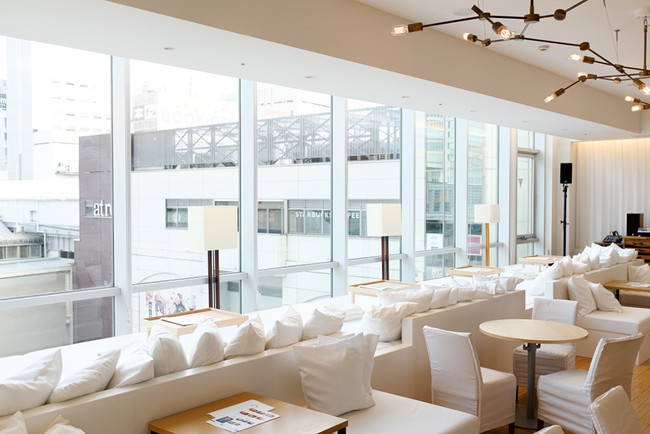 JR秋葉原駅を見下ろし旅立つ列車の様子を楽しむ窓際席や、動き回るお子様を安心して遊ばせられる個室のマットレス席など、白く統一された空間の中にも、様々なタイプのお席をご用意している“chano-ma=茶の間”で、春を満喫できるティータイムをお過ごしください。