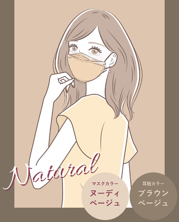 マスクカラーと耳紐カラーのツートンカラーで横顔も魅せる。