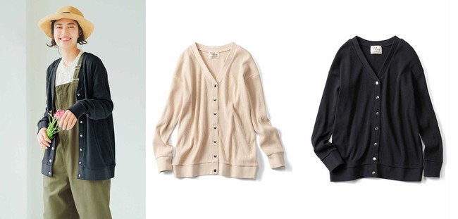 Live love cottonプロジェクト リブ イン コンフォート ふっくらワッフル素材のオーガニックコットンカーディガン