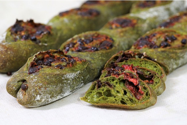 抹茶生地にチョコといちごチョコ、練乳パウダーを加えて焼き上げた期間限定のバゲット。