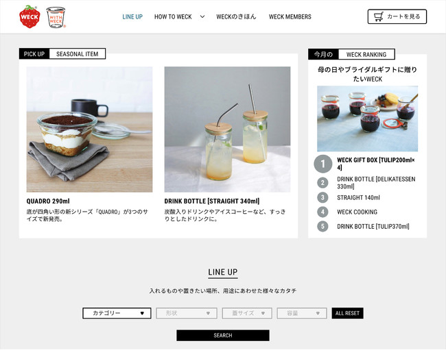 今回のブランドサイトリニューアルでは、WECKの魅力をより多くの方にお伝えできるよう初心者の方に向けた旬のコンテンツをご用意しており、WECKをはじめて手にする方にとって役立つ情報が満載です。また、ブランドサイト内でお買い物ができるようECサイト機能も実装し、より便利に生まれ変わりました。さらに、WECKを一緒に楽しんでいただける「WECK MEMBERS」の募集も開始しました。