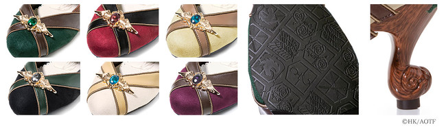 つま先には自由の翼をイメージしたチャームを取り付け、アウトソールには本商品のために特別に起こした兵団マークデザインを採用。ヒールには、調査兵団の馬の形状をイメージしたヴィンテージライクなウッド調ヒールを。細部までこだわり抜いたデザインを是非お楽しみください。