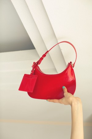 モードさを表現するハリのある構築的なフォルムや光沢感のあるファブリックを使用。