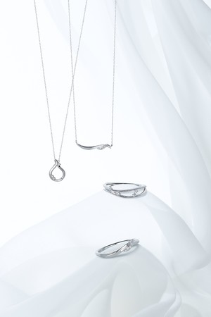 はためいてはひるがえす、風の流れるようなラインをイメージしたしなやかなジュエリーなどがラインナップ。