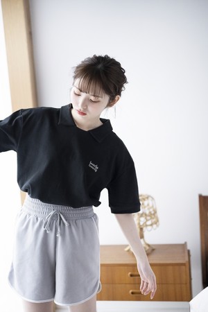 ポロTシャツはスポーティーでカジュアルな雰囲気に。 “loosely loosely”の刺繍にはゆったり過ごそうという思いが込められています。