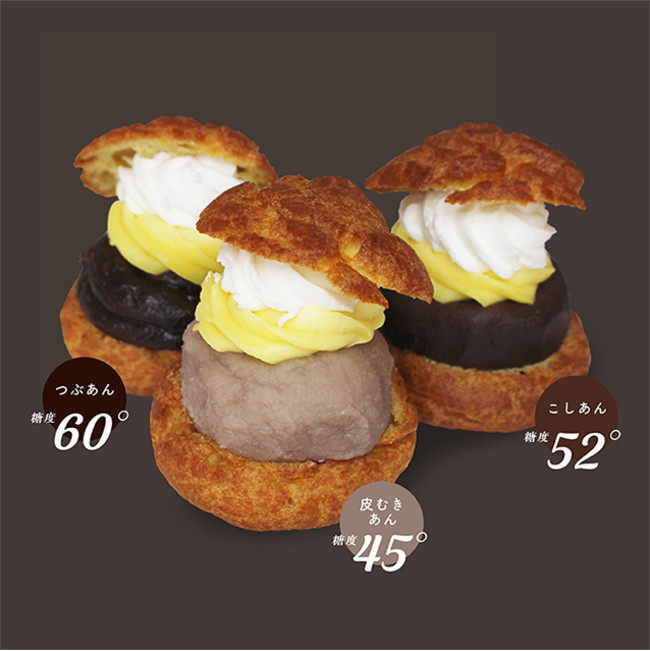 つぶあん(糖度60°)・こしあん(糖度52°)・皮むきあん(糖度45°)の3種。