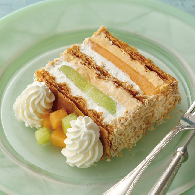 2種類のメロンを、サクサクパイ生地で贅沢に味わう一品です。