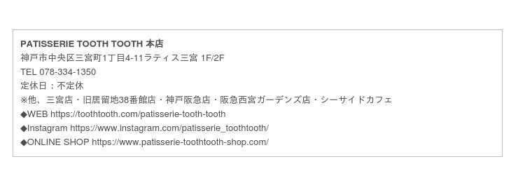 神戸市でカフェ・レストランを展開する「TOOTH TOOTH」のオンラインショップ「TOOTH TOOTH MART STORE」( https://www.toothmartstore.com/ )に「PATISSERIE TOOTH TOOTH」初夏の新作スイーツが登場!