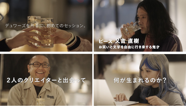 バカルディ ジャパン株式会社(代表取締役社長 東智徳)が輸入し、サッポロビール株式会社(代表取締役社長 野瀬裕之)が販売するスコッチウイスキーブランドのデュワーズは、グローバルキャンペーン「いつも胸に、好奇心を。」をさらに推進させるべく、本日4月26日(火)より国内向けのオリジナルキャンペーンとして「いつも胸に、好奇心を。-MIXTURE OF CURIOSITY-」を開始します。同キャンペーンでは、お笑いをはじめ小説・映画・舞台・YouTubeなど様々な領域で創作活動を行う又吉直樹さんをお迎えし、VRアーティストのせきぐちあいみさん、AI開発者の竹之内 大輔さんと、それぞれコラボレーションを行い、今まで見たことのない新しい作品を生み出します。創作した作品は5月の公開を予定しており、本日4月26日(火)に、又吉さんと2人のキャストの最初の打ち合わせ風景や、創作中の様子をまとめた、予告動画を公開します。