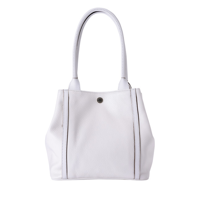 ブランド名を刻印したメタルパーツは、丁寧に高い精度で加工された高級感のあるオリジナルパーツ。 ホワイトのレザーと相まってバッグを際立たせます。ファスナーは、YKK社製でファスナーの貴婦人とも言われるEXCELLA(エクセラ:エレメントひとつひとつの全面に入念な磨きをかけた滑らかさが特徴)を使用しています。シュリンクレザーには強撥水加工を施し雨や汚れにも強く丈夫です。革小物にはカーフのように繊細でしなやかな極上のゴート革を使用。ゴートならではの極小のシボに覆われているため高い強度で傷がつきにくく、強撥水加工を施すことで汚れにも強いヘビーユースに最適な仕様です。