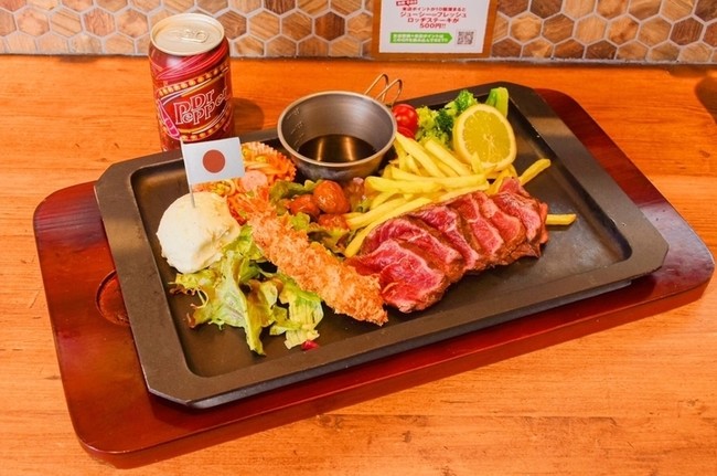 『大人のお子様ランチステーキ』はこどもの日を含む5月1日(日)~5月7日(土)のGW期間、渋谷宇田川店限定でご提供します。ランチのみならず、夜まで終日ご注文可能です。また、このメニューをご注文のお客様に限り、子供の頃の思い出が蘇るドリンク「ドクターペッパー」1本がサービスとなります。
