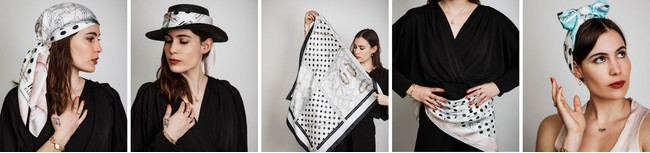 LE RUBONコレクションのシュシュは1つで4つ以上のスタイリングができる優れものです。垂らして結んだり、リボンにしたり、輪の部分のみ、サッシュの部分のみで使うことが可能。サッシュの部分は手首や首に巻いたり、バッグに巻いてアレンジすることも。