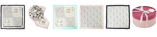 フランスの名言が散りばめられたシンプルなスカーフは、LE RUBAN 。noir / roseの2色。
