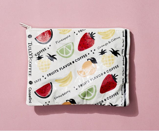 今回のアイテムには、「Casselini」のポップなフルーツ柄をベースに、コラボオリジナルデザインに仕上げました。パッと目を引く明るいカラーリングと、華やかなフルーツ柄のアイテムは、持ち歩くだけで楽しい気分にさせてくれます。タリーズコーヒーの色鮮やかなアイテムと共に、初夏の気分を盛り上げましょう。